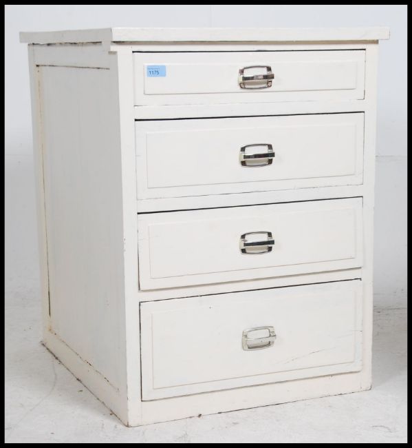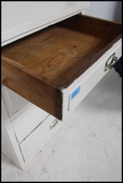 An early 20th century painted oak pedestal chest of drawers - bank of drawers of Industrial form having later 1970's handles. Measures 77cm high x 59cm wide x 68cm deep.