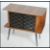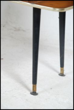 A 1950's mahogany retro vintage mid century side cabinet raised on dansette legs with black glass cabinet, flared top above. Measures 69cm high x 76cm wide x 38cm deep.