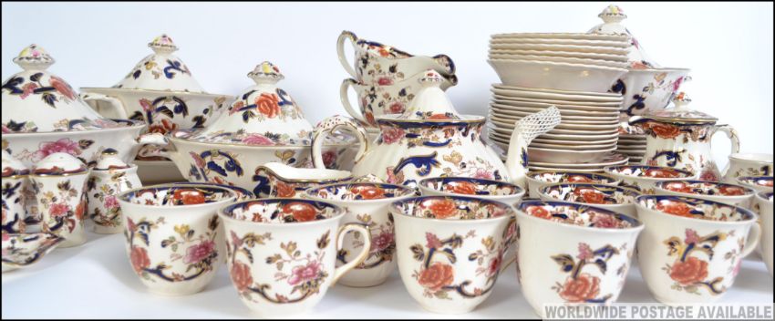 An extensive Masons Mandalay dinner and tea service comprising serving tureens,large serving dish, dinner plates, side plates, cups, saucers, bowl, teapot, condiments etc ( see images )