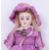 ANTIQUE DOLL: An unusual likely German made antique doll with bisque head and leather body. Appears to have original period clothing, complete with a millifiori glass brooch. Fixed glass eyes. 37cm tall, approx.