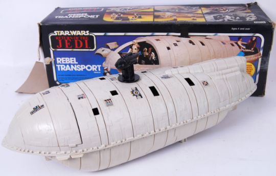 STAR WARS: An original vintage Palitoy made ' Return Of The Jedi ' Star Wars ' Rebel Transporter ' action figure playset. Complete, including some original backpacks and masks. Within the original box.