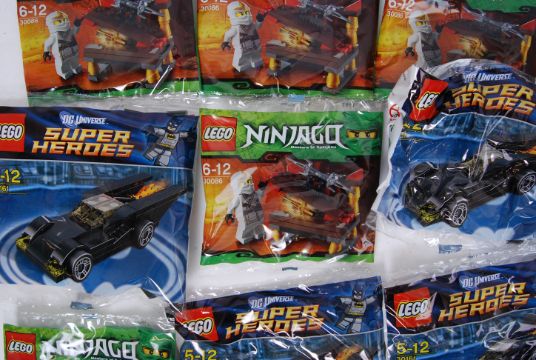 LEGO: An original trade box of Lego polybags ' 30161 Batman ' filled with 19x Batmobil polybags and 19x Ninjago 30086 sets. All sealed, unused.