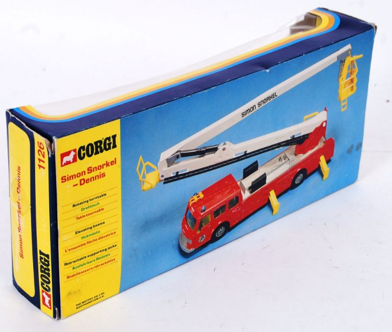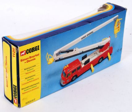 CORGI: An original vintage Corgi diecast model 1126 Simon Snorkel - Dennis fire engine. Within the original box.