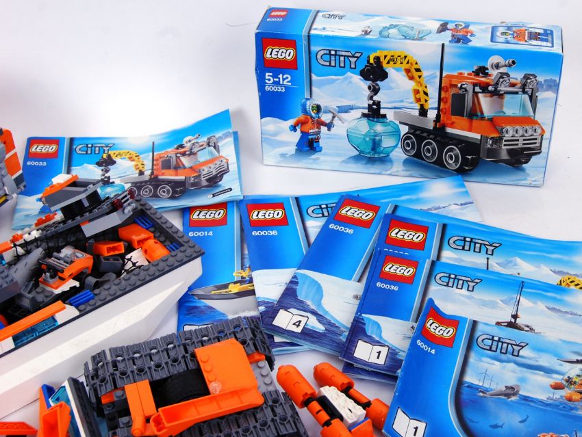 LEGO: A collection of assorted loose Lego City Arctic sets - some part made / fully made. Unchecked for completeness, with some minifigures and instructions and 1x related empty box.