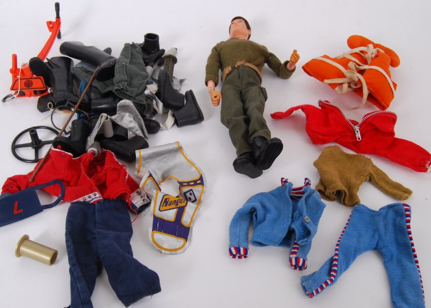 ACTION MAN: A collection of vintage Palitoy Action Man clothing and accessories to include an original vintage Action Man figure (with both hands present), weapons etc.