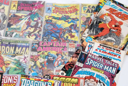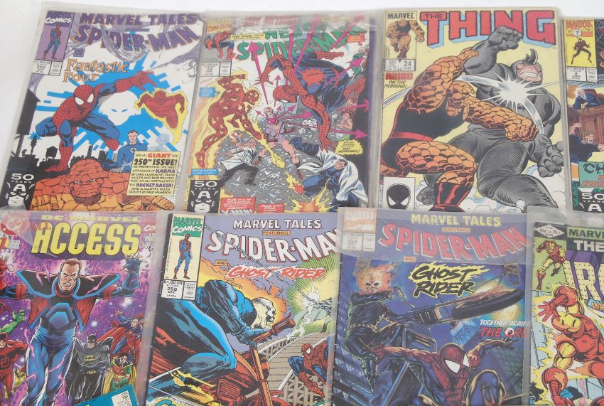 COMIC BOOKS: A collection of vintage 1970's - 1990's DC & Marvel comics. To include Flash, Dragon's Claws, Iron Man, Spider Man, The Thing and other titles.