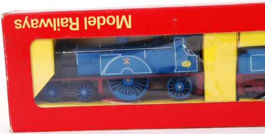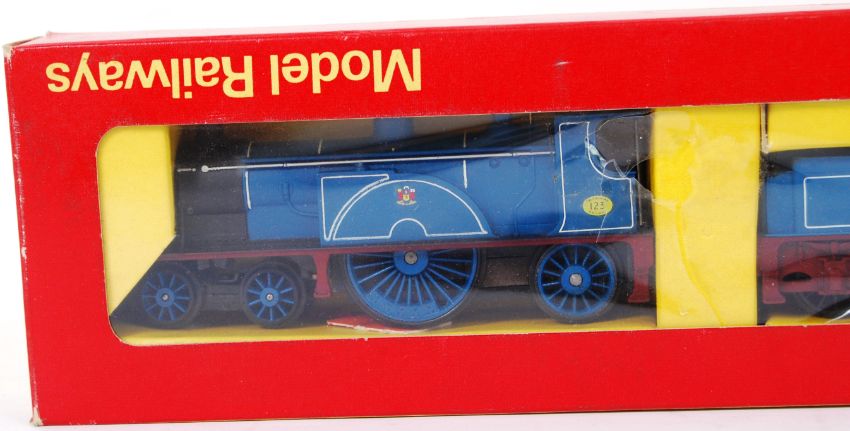 HORNBY: An original vintage Triang Hornby 00 gauge R553 Caledonian railway train set locomotive and tender. Within the original box.