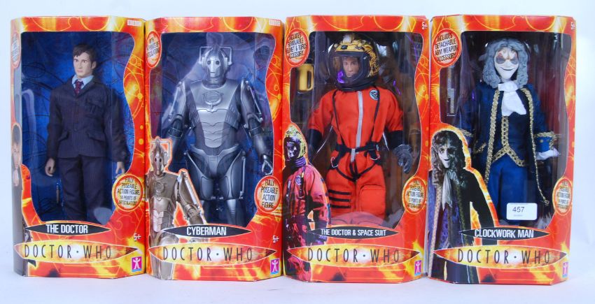 DOCTOR WHO: A collection of 4x Doctor Who Character Toys 12" size action figures. Each unused, mint, within the original boxes. To include The Doctor, The Doctor and Space Suit, Clockwork Man and Cyberman.