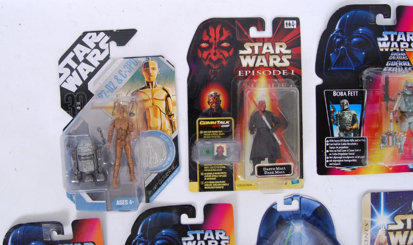 STAR WARS: A collection of 7x assorted Star Wars action figures - all carded / unused. To include Hasbro, Ralph McQuarrie Series, Attack Of The Clones and others.