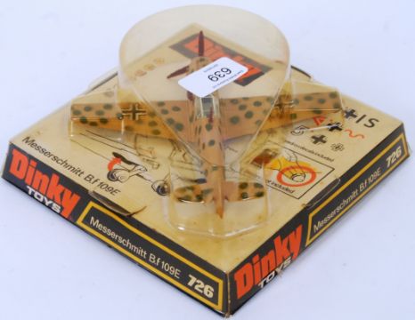 DINKY: An original vintage Dinky diecast model plane 726 Messerschmitt BF109E in Desert Camouflage. Mint and sealed, within the original display box.
