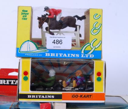 BRITAINS: A collection of 4x assorted Britains diecast models / plastic models, comprising of 9681 Motorcycle, 9699, 9640 Go Kart and 2075 Show Jumper. All mint, within the original boxes.