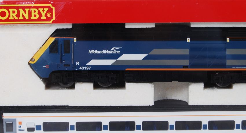 HORNBY: A Hornby 00 gauge railway trainset R2376A Midland Mainline HST. Mint, in the original box. Likely unused.