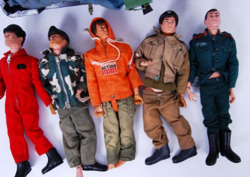 ACTION MAN: A collection of 5x vintage Palitoy Action Man figures, along with a collection of assorted clothing, weapons and other accessories (some not vintage).