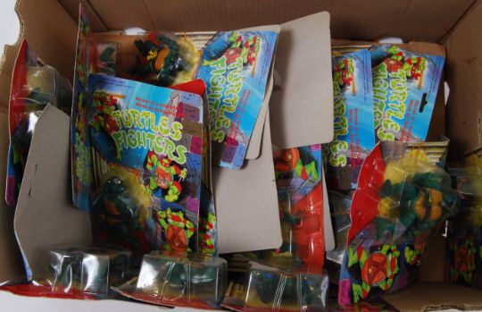 TURTLES FIGHTERS: A collection of approx 30x Teenage Mutant Ninja / Hero Turtles bootleg action figures ' Turtles Fighters '. All carded, unused and unopened.