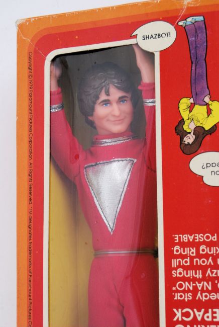 MORK & MINDY: An original vintage 1979 Mattel made Mork & Mindy action figure ' Mork With Talking Spacepack '. Within the original box. Figure appears still wired to inner card. Appears complete, and little used. The Spacepack with working voice.