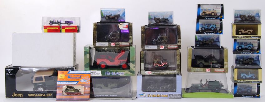JEEP DIECAST: A collection of assorted boxed Jeep and related diecast to include some 1:79 00 gauge scale, Cararama, New Ray, Schuco, 1:90 scale, Jeep etc. x23 in total.
