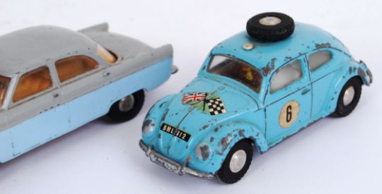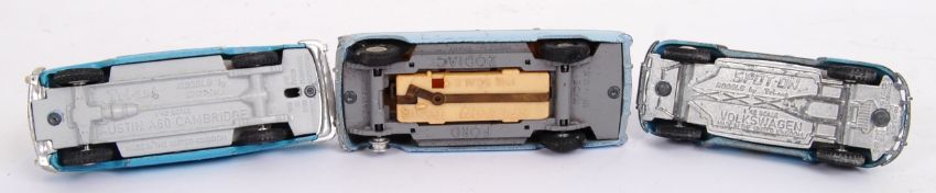 SPOT ON: A collection of 3x original vintage Triang Spot On 1/42 scale loose diecast models - Austin A60 Cambridge (with 2x original skis), Ford Zodiac and Volkswagen Beetle.