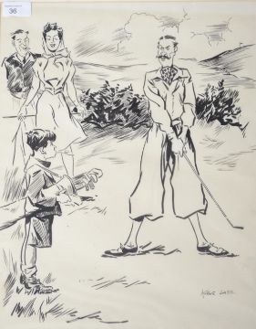 Arthur Laird (?), Comedic golfing illustration in the 1920's style.  Framed and glazed.