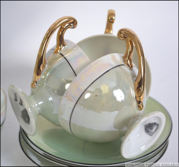 A continental mid century lustre part coffee service comprising cups, saucers and coffee pot etc