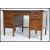 A vintage mid century Air Ministry style oak twin pedestal desk having thick flared top with drawers to the underside. Measures: 76cms high x 123cms wide x 76cms deep.
