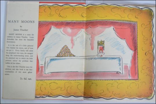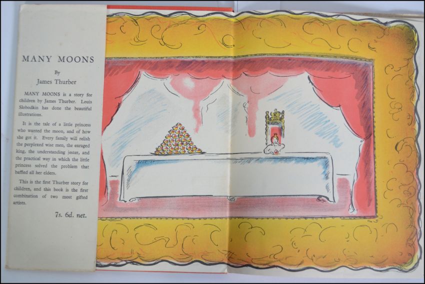 ' Many Moons. ' Thurber, James. Illustrated throughout in colour by Louis Slobodkin. Hamish Hamilton, London. 1944. Original red cloth binding with colour pictorial dust jacket.