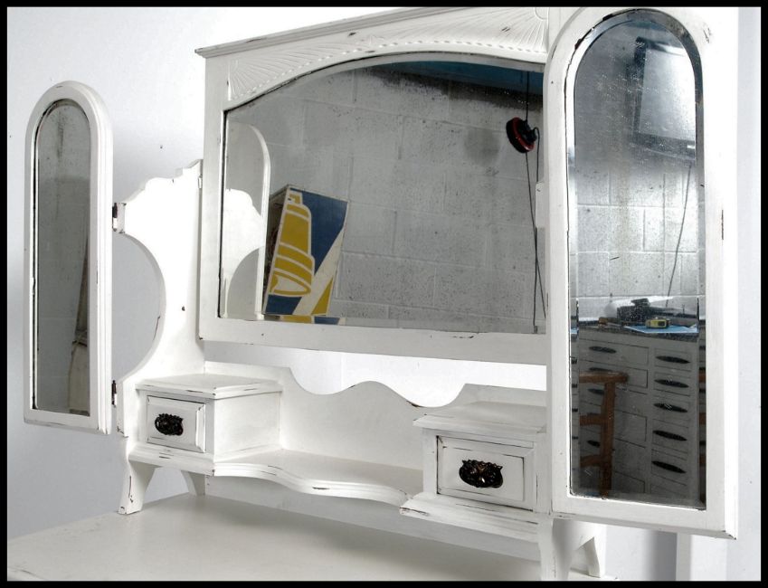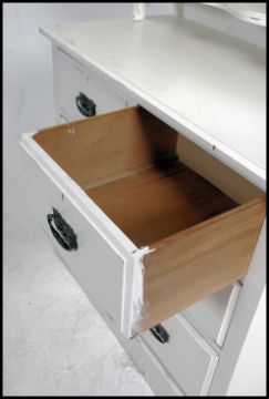 An Edwardian 20th century painted satin wood dressing table chest of drawers having a sectional triptych mirror above two short drawers over two long drawers on a plinth base. Measures: 172cms high x 92cms wide x 48cms deep.