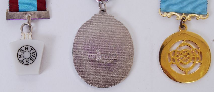 A set of 3x original Masonic Lodge medals. 1992 '25th anniversary of the Grand Lodge', 'St. Kenya Lodge 1879 No 1833' and lettered medal. All have original ribbons.  POSTAGE: Worldwide postage / delivery available on all items. Combined postage available; UK £15.99+VAT, Ireland from £19.99+VAT, Europe from £19.99+VAT, USA / Canada from £30+VAT. Any other destinations please get in touch for a quote; info@eastbristol.co.uk. All quotes dependant upon location. Prices are per parcel (not per item).