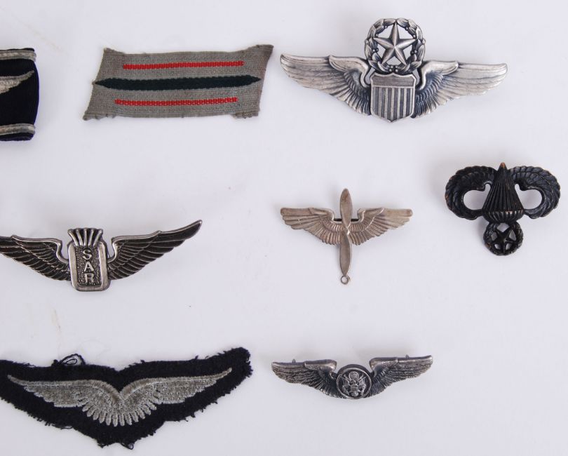 A collection of assorted German and related flying memorabilia to include Third Reich, inter-war and post war badges, wings, and a cuff title etc. Interesting mixture of items.  POSTAGE: Worldwide postage / delivery available on all items. Combined postage available; UK £15.99+VAT, Ireland from £19.99+VAT, Europe from £19.99+VAT, USA / Canada from £30+VAT. Any other destinations please get in touch for a quote; info@eastbristol.co.uk. All quotes dependant upon location. Prices are per parcel (not per item).