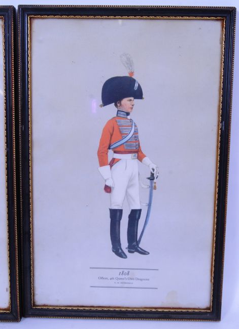 A collection of 12 Framed Prints of British Army Soldiers, from 1705 to 1939, each measuring 14.5"/37cm by 9.5"/25cm. Subjects include 17th Light Dragoons, 18th Hussars & Royal Horse Guards etc.  POSTAGE: Worldwide postage / delivery available on all items. Combined postage available; UK £15.99+VAT, Ireland from £19.99+VAT, Europe from £19.99+VAT, USA / Canada from £30+VAT. Any other destinations please get in touch for a quote; info@eastbristol.co.uk. All quotes dependant upon location. Prices are per parcel (not per item).