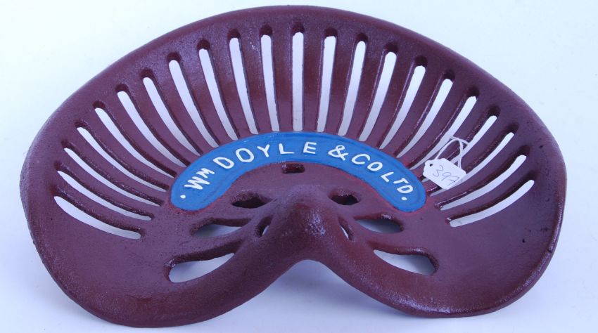 A 20th century vintage style cast iron tractor seat, with notation to top. Hand painted. POSTAGE: Worldwide postage / delivery available on all items. Combined postage available; UK £15.99+VAT, Ireland from £19.99+VAT, Europe from £19.99+VAT, USA / Canada from £30+VAT. Any other destinations please get in touch for a quote; info@eastbristol.co.uk. All quotes dependant upon location. Prices are per parcel (not per item).