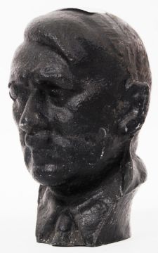 A believed original WWII Second World War era cast alloy metal bust of Adolf Hitler. Painted black. Age unknown. 14cm tall.  POSTAGE: Worldwide postage / delivery available on all items. Combined postage available; UK £15.99+VAT, Ireland from £19.99+VAT, Europe from £19.99+VAT, USA / Canada from £30+VAT. Any other destinations please get in touch for a quote; info@eastbristol.co.uk. All quotes dependant upon location. Prices are per parcel (not per item).