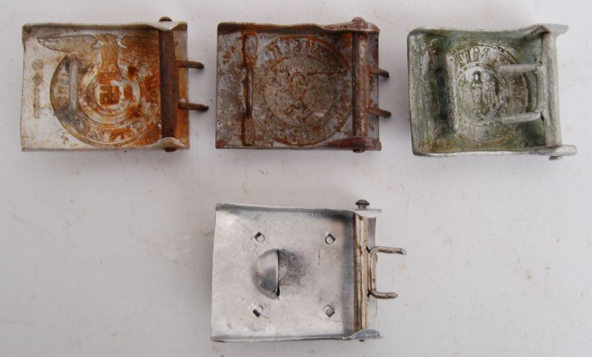 A collection of 4x Third Reich Nazi belt buckles. Each of white metal design, with a differing emblem to the front. One SS (believed reproduction) others are believed to be genuine (but please satisfy yourselves prior to bidding). POSTAGE: Worldwide postage / delivery available on all items. Combined postage available; UK £15.99+VAT, Ireland from £19.99+VAT, Europe from £19.99+VAT, USA / Canada from £30+VAT. Any other destinations please get in touch for a quote; info@eastbristol.co.uk. All quotes dependant upon location. Prices are per parcel (not per item).