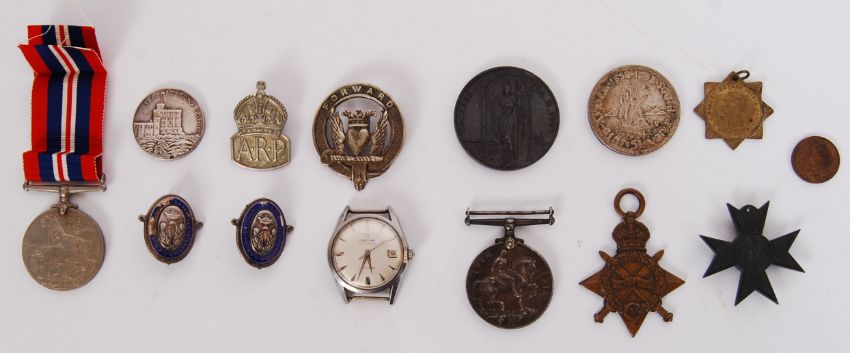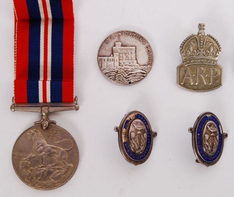 A collection of items relating to Pte T Douglas 5887 of the Royal Highlanders. To include his WWI medal pair, and WWII War medal along with a collection of personal items to include watch, badges, ARP badge etc. Nice group. POSTAGE: Worldwide postage / delivery available on all items. Combined postage available; UK £15.99+VAT, Ireland from £19.99+VAT, Europe from £19.99+VAT, USA / Canada from £30+VAT. Any other destinations please get in touch for a quote; info@eastbristol.co.uk. All quotes dependant upon location. Prices are per parcel (not per item).