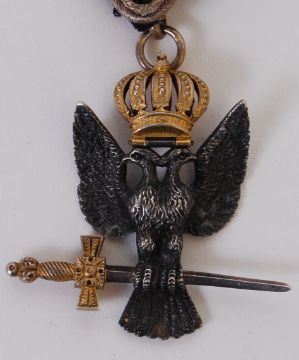 An original 20th century ceremonial Masonic fabric necklace with silver pendant. Pendant depicting an Eagle wearing a crown with a sword between its feet. Silver mark Spencer & Co, Birmingham 1916.  POSTAGE: Worldwide postage / delivery available on all items. Combined postage available; UK £15.99+VAT, Ireland from £19.99+VAT, Europe from £19.99+VAT, USA / Canada from £30+VAT. Any other destinations please get in touch for a quote; info@eastbristol.co.uk. All quotes dependant upon location. Prices are per parcel (not per item).