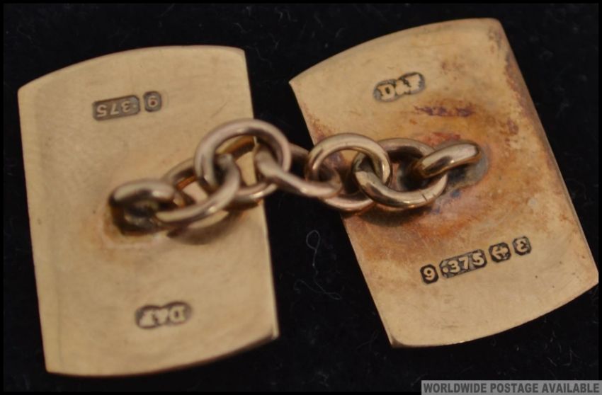 A pair of vintage gentlemans 9ct gold hallmarked cuff links presented within the original case.