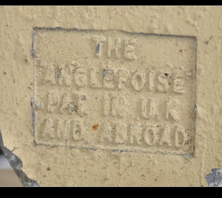 A mid century Herbert Terry 1227 model anglepoise desk lamp with square terraced base and pendant shade in the original white paint. Measures: 78cms high.