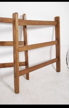 A pair of vintage early 20th century wide wooden fruit ladder display bases / display racks with stunning joint detail. Measures: 85cms high x 79cms wide x 8cms deep.