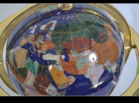 A 20th century Lapis Lazuli spherical globe being raised on a gilded metal stand. Measures: 34cms high.