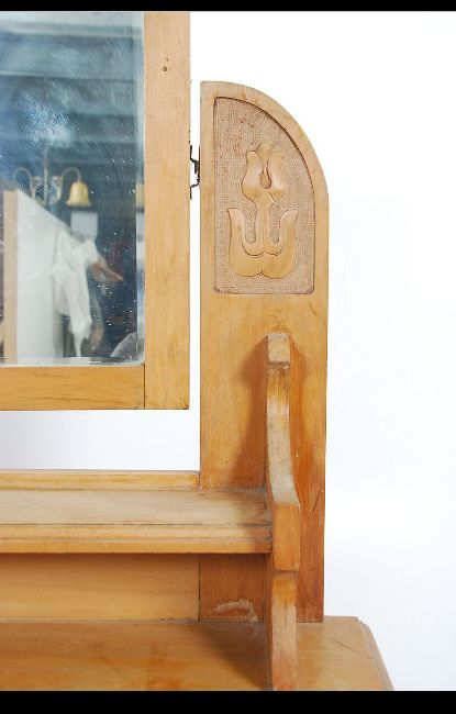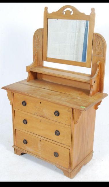 An early 20th century satin walnut dressing table chest of drawers with shaped mirror over three straight drawers raised on a plinth base. Measures: 140cms high x 90cms wide x 45cms deep.