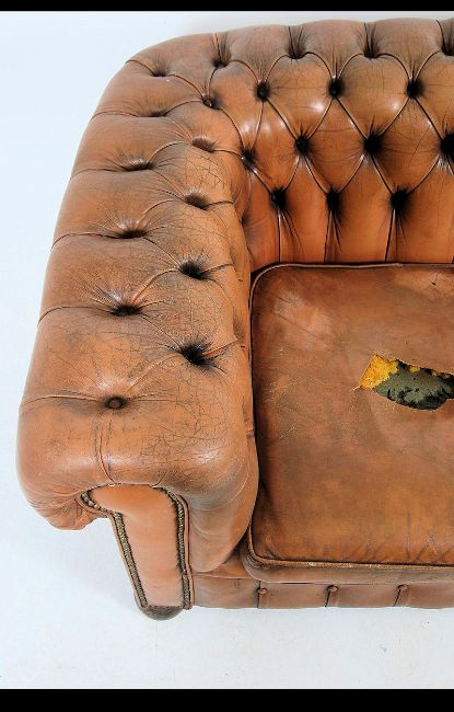 A 20th century brown leather chesterfield sofa settee with barrel arms and back rest having upholstered button backed leather. Measures: 73cms high x 205cms wide x 95cms deep.