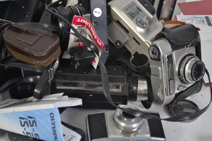 A collection of cameras to include bellows vintage camera, slr cameras and others ( see illustrations )