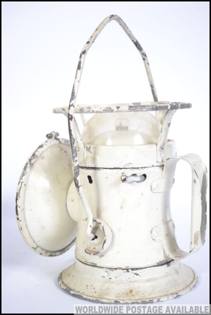 A vintage retro black ring dial telephone together with a vintage railways two way lantern with carry handle. Measures: 26cms high.