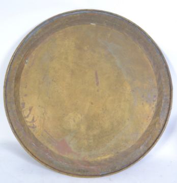 A large brass Islamic table top brass tray with central geometric design of Ottoman design with raised border