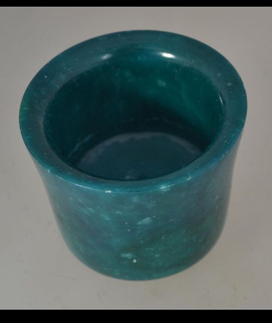 An unuusual Chinese green Jade brush pot of cylindrical tapering form