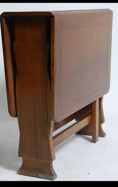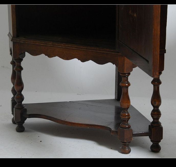 A 1920's Jacobean corner cabinet on stand. Golden oak with central door on turned legs together with an Art Deco style oak gate leg dining table