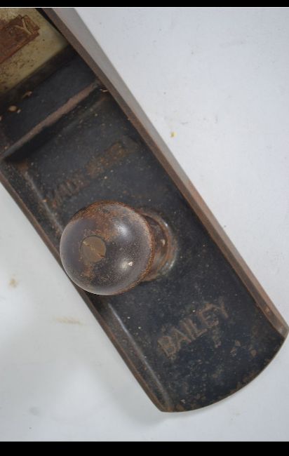 A 20th century large Stanley Bailey No 7 woodworking tool having wooden handle. See illustrations ). Measures: 55cms long.