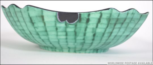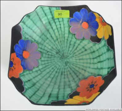 A 1930's Art Deco Crown Devon Matita pattern fruit bowl having stunning cobweb and flower design bearing stamps to the underside. Measures: 24cms wide.