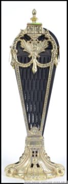 A good early 20th century heavy gilt metal peacock metamorphic fire guard in the rococo style with plinth base and finial top. Measures: 64cms high.