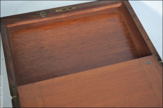 A 19th century Victorian walnut tunbridge inlaid writing slope having an appointed interior to include inkwells etc. Measures: 35cms wide.