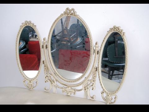 A 20th century French Louis Shabby Chic 16th style dressing table of kidney form raised on slender legs with triple mirror above
